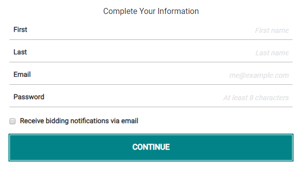 From here, you can click on the “Sign Up” link to create a new bidding account. This is also where you can reset your password, or sign in (if you have an existing account).