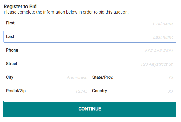 Navigate to the auction or lot you wish to bid on, and click on the “Register to Bid” button.